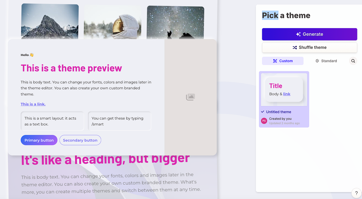 Gamma AI یک پلتفرم طراحی محتوا با هوش مصنوعی است که امکان ایجاد سریع پرزنتیشنها، وبسایتها، اسناد (مانند پروپوزالها، فایلهای PDF)، و پستها یا گرافیک های شبکههای اجتماعی را فراهم میکند. برای استفاده از آن لازم نیست طراح حرفهای باشی؛ کافی است موضوع یا محتوای کلی را وارد کنی، بقیه توسط هوش مصنوعی انجام میشود.